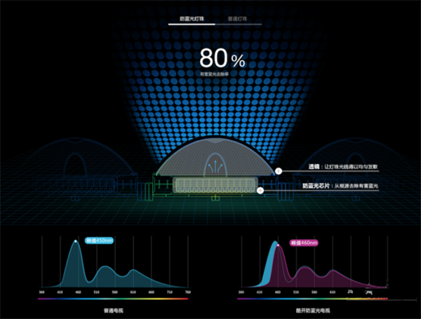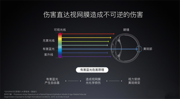 4K防蓝光测试:保证画质的最佳护眼方式现代人总是离不开各种屏幕,但是这些屏幕会释放一种高能短波蓝光(波长415~455nm),其能量强度仅次紫外线,能够穿透晶状体直达视网膜,长期接触会对眼睛造成不可逆转的伤害。而电视作为其中最大的一块屏幕,护眼功能就显得尤为重要了。