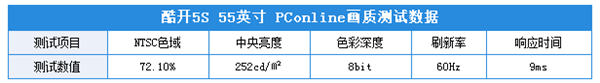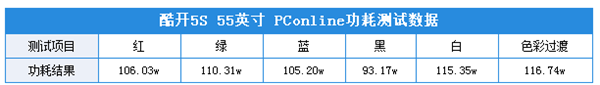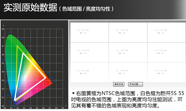 从仪器测试的数据来看,酷开5S的高动态范围的表现十分出色。亮度均匀性也很优秀,亮度之间的差值也都很小。