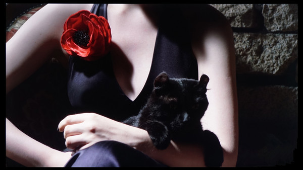 黑白标准测试画面,雨伞图中,灯光下黑色伞布从亮到暗有着细腻的层次过度,包括雨伞阴影下人物脸部的表情也有清晰的刻画;猫与女人的测试画面中,黑色的毛与黑色服装以及黑色背景之间都有细腻的过度。
