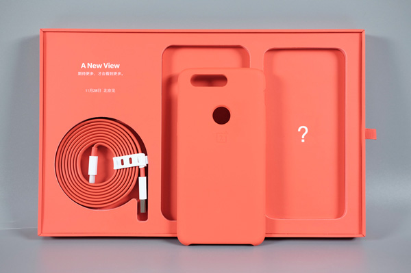 一加5T的邀请函外表是很纯正的一加设计,纯黑的外包装抽拉式红色内衬,里边是发布会信息、一条DASH闪充数据线和一个形似一加5T的手机保护套,这是没买新手机用不上套子的节奏了!