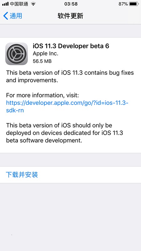 苹果今天放出了iOS 11.3 beta 6公测版和开发者预览版,距离iOS 11.3 beta 5的推送仅有4天,距离iOS 11.2.6的推送大约一个月。
