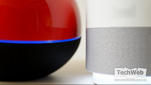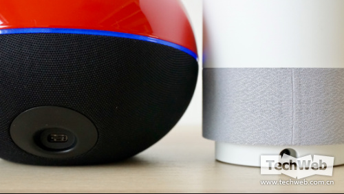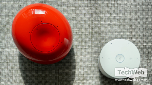 两款智能音箱都采用了6麦克风阵列,且麦克风均设置在了机身顶部。不同的是,若琪的顶部的麦克风静音、音量加减与电源键采用了机械式的按压按键,而天猫精灵的这些按键为轻触式,虽然没有了若琪月石的清晰的按键反馈,但在操作上,天猫精灵的轻触式按键更具科技感。