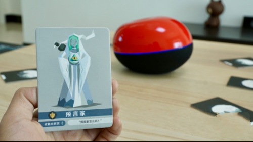 若琪月石的特色功能当属“一夜狼人杀”这一全球首款基于智能语音的多人互动游戏。准备好一夜狼人杀卡牌,对若琪说“若琪,打开一夜狼人杀”,伴随着很有代入感的背景音效,便可开始游戏。在告知若琪玩家数量后,若琪便会通过语音智能选好需要的角色卡,并引导玩家发牌开始游戏。当玩家对自己抽取到的角色玩法不太了解时,还可以按照语音提示卡上面的指导对若琪发问:“若琪,预言家怎么玩”或“若琪,爪牙有什么策略”等,对新手玩家十分友好。游戏结束后,还可以通过语音命令“若琪,开始新一轮游戏”来重新开始下一轮厮杀。