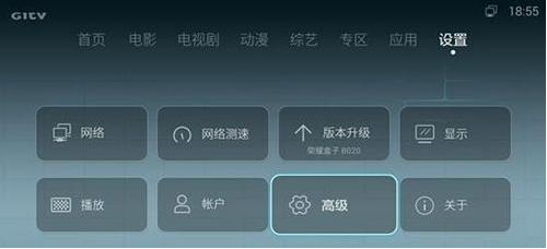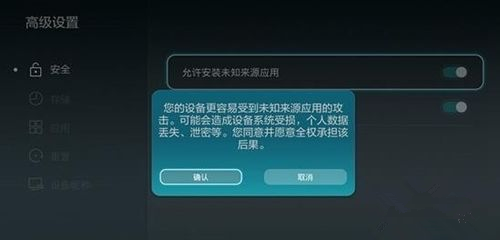方法第一步:通电,启动荣耀盒子,进入主界面选择“设置”——“高级”;选择“安全”选项,打开“允许安装未知来源应用”和“开启ADB调试”,并点击确认;(在开启“允许安装未知来源应用”的时候会弹出对话框,不必理会,直接点击确认机型)