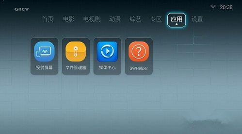 第二步:返回首页,选择“应用”,紧接着点击“文件管理器”;将下载下来的第三方apk软件,拷贝到到U盘中,并已经连接荣耀盒子的USB接口,然后选择“USB1”;