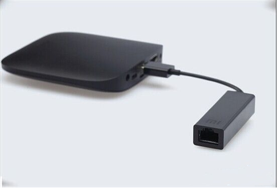 如果你的小米盒子本身没有以太网接口(如小米盒子增强版)而你又想用网线连接。那么你需要一条“USB外接百兆网卡”,将USB外接百兆网卡USB一头插在小米盒子上,另一头插入网线,则联网成功。
