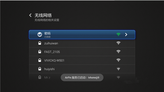 7.无线网络连接成功,你的小米盒子可以上网了。