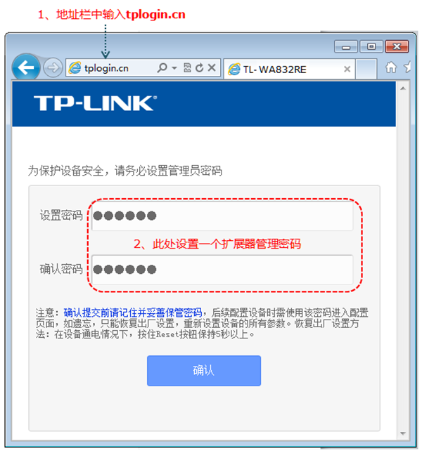 在浏览器地址栏输入tplogin.cn,登录到扩展器管理界面。