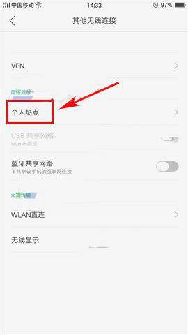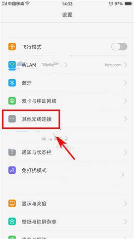 OPPO R11s如何建立个人热点教程1)开启数据网络,进入设置菜单打开【其他无线连接】(如下图)