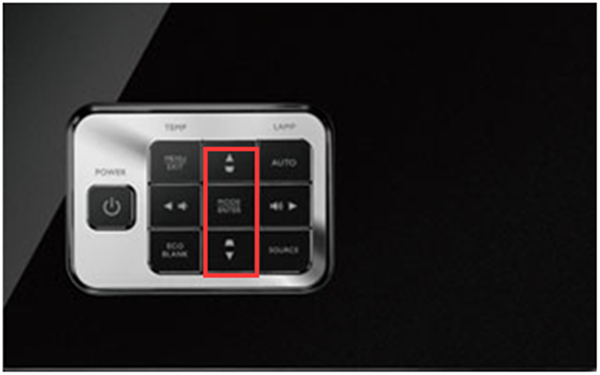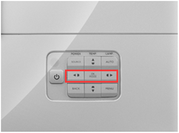 3、垂直梯形调整(实现左、右两边平行):垂直梯形调整按键(红框处)调整。
