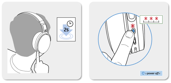 当音频线插入音频输入端时,耳机立即关闭。如果耳机电量足够,您可以打开NoiseGard,从耳机的降噪功能中受益。如需在音频线连接时激活或停用NoiseGard。