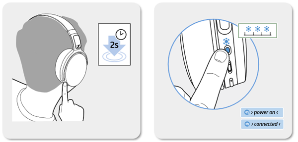 您会听到语音提示“power on”和“connected”,此时LED 会闪烁蓝色光3 次。