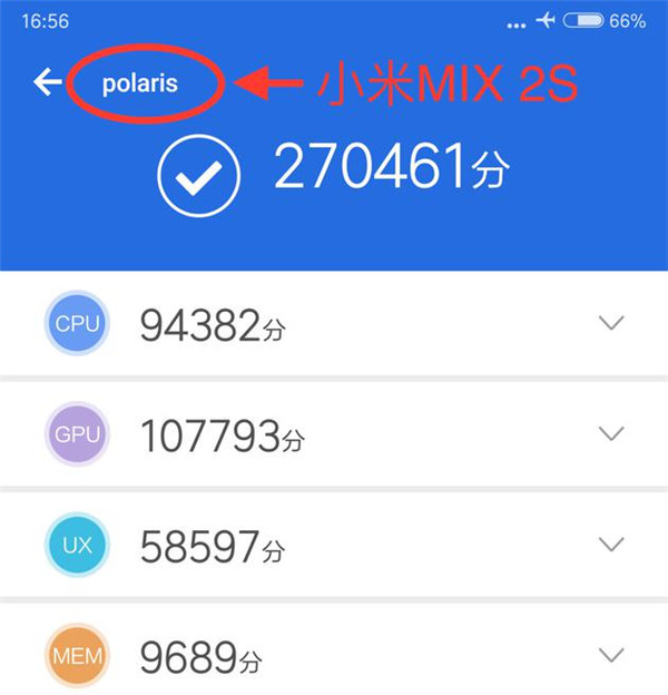 小米MIX 2S跑分多少这张图上左上角显示机型名称是”Polaris“,据说这是小米新款手机的内部代号,只不过有人说是小米7,也有人认为是小米MIX 2S。但无论是谁,都将是小米的新旗舰产品,不出意外应该采用高通骁龙845处理器。