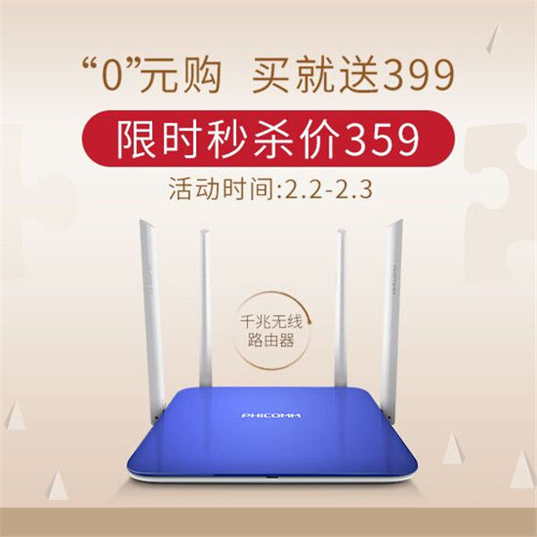 0元购路由器"0"元购斐讯K2海蓝无线千兆路由,买就送399元,限时直降40元,京东支付再减5元。并且这个活动时间截止在2月3日。
