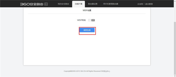 关闭WISP网络开关后,点击保存生效,即可关闭WISP(无线万能中继)。
