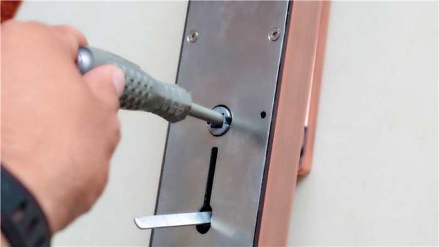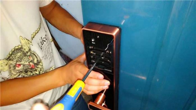 青松沃德指纹智能锁安装教程下面开始安装,先拆掉旧锁。用起子。