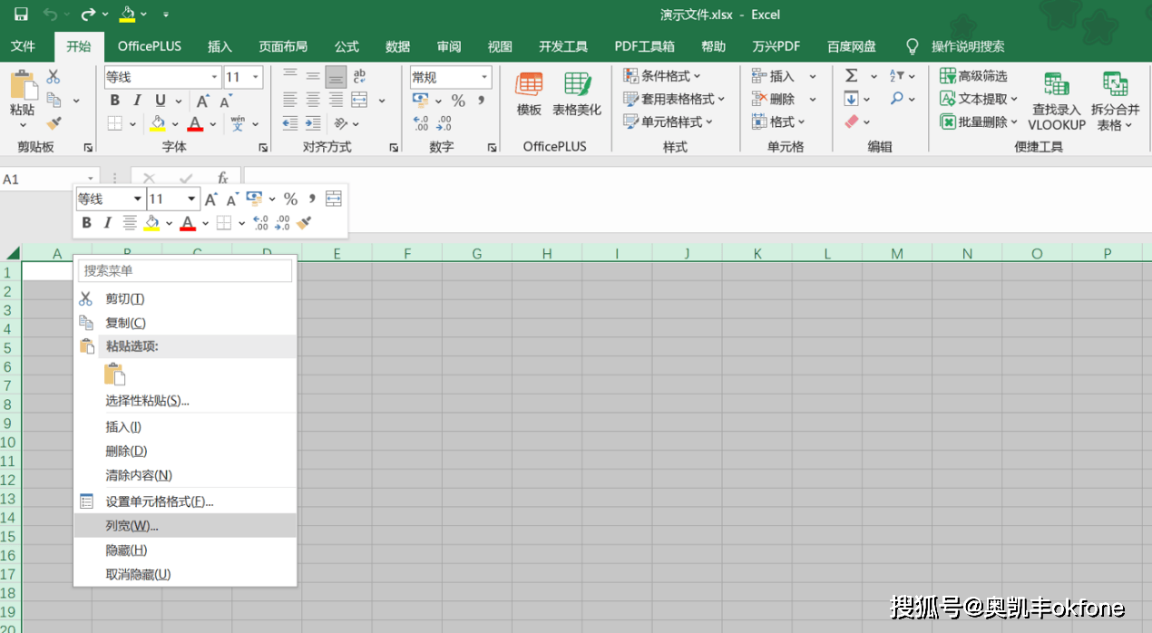 第二步:将鼠标放到列上(如:A),点击鼠标右键,选择【列宽】,将数值设置为2.