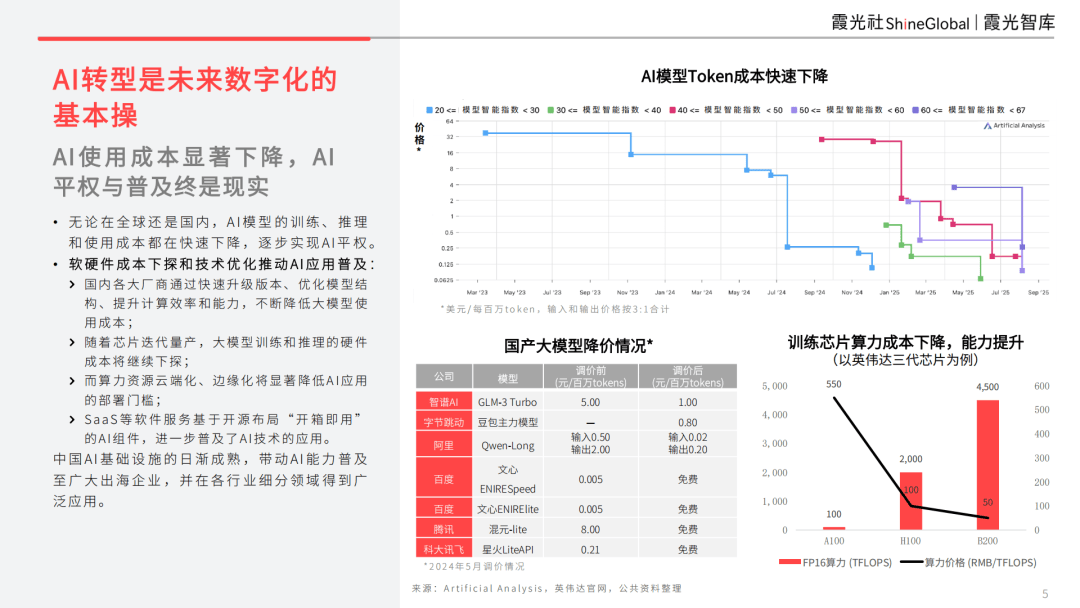 AI转型是未来数字化的基本操:AI使用成本显著下降,AI平权与普及终是现实
