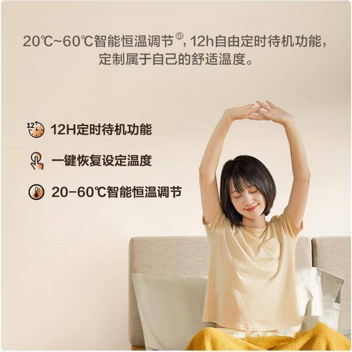 双人独立控温设计更是贴心,1.8*2米的大尺寸完全覆盖双人床,左右两侧可分别设置不同温度,满足夫妻或家人之间的个性化需求。再也不必为"你嫌热我嫌冷"而争执不休。