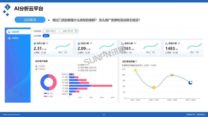 客流统计摄像机在AI识别算法加持下,已经可以精准统计进出场人数。并能识别顾客性别、年龄等数据。注意顾客的人脸数据会自动删除不保存、只保存标签属性内容。这样既保证不侵犯顾客隐私,也能为商场、景区的运营决策提供数据支持。