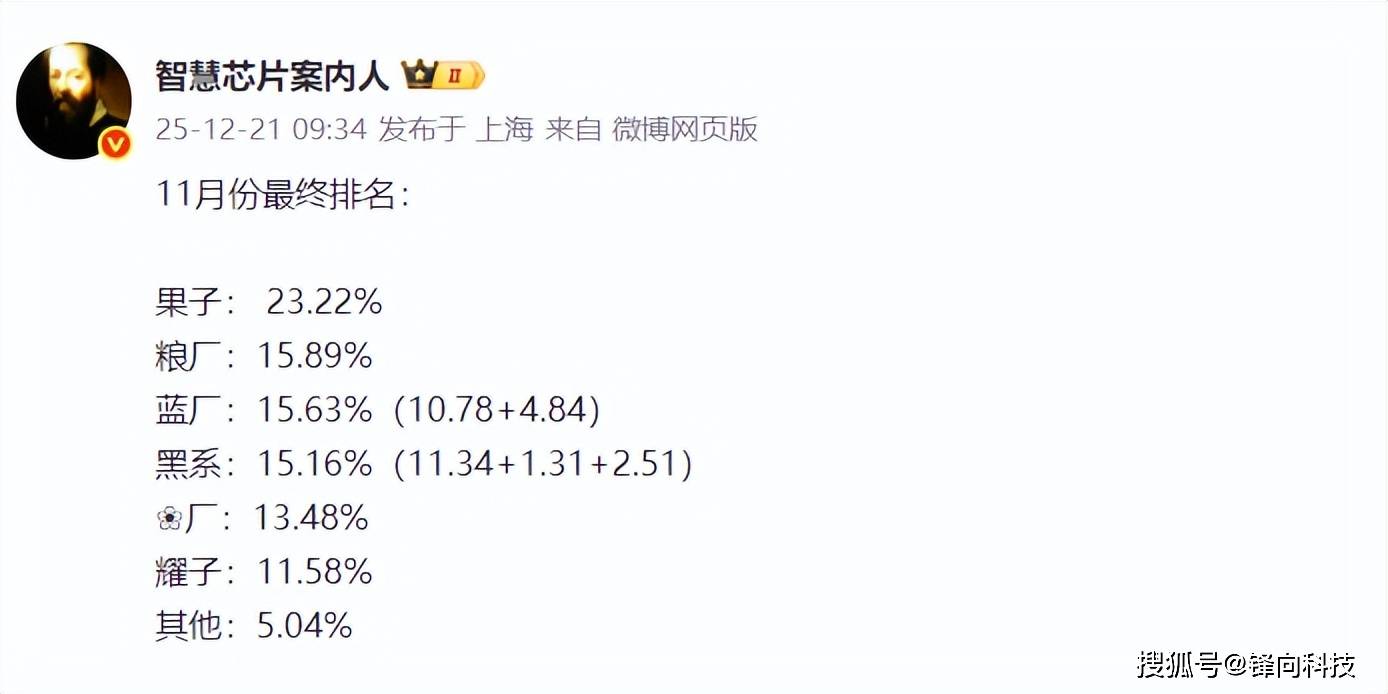 2025年的11月有点不一样,因为在这个月那几款热门旗舰全部进入了平销期。而恰恰只有在平销期才能看出来谁最受欢迎,所以很多人都在等11月份的数据出炉。就在今天行业人士“智慧芯片案内人”正式给出了11月份的排名。