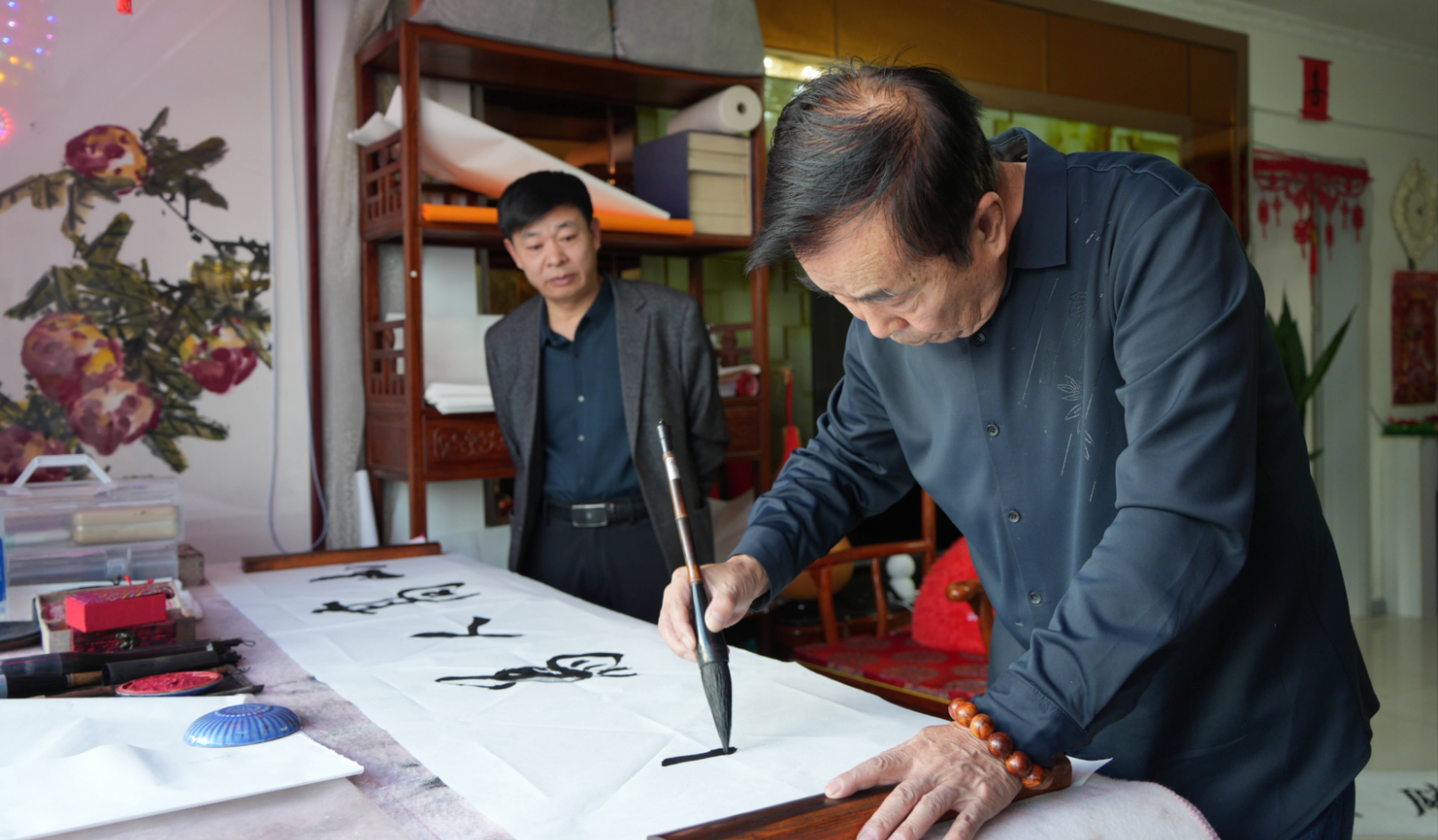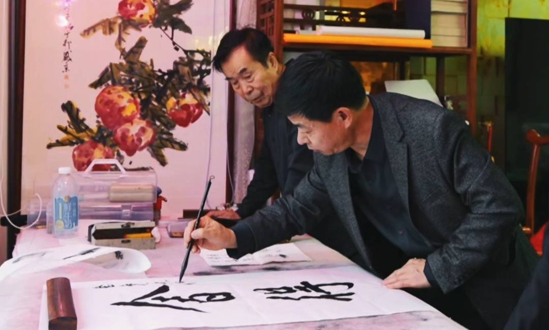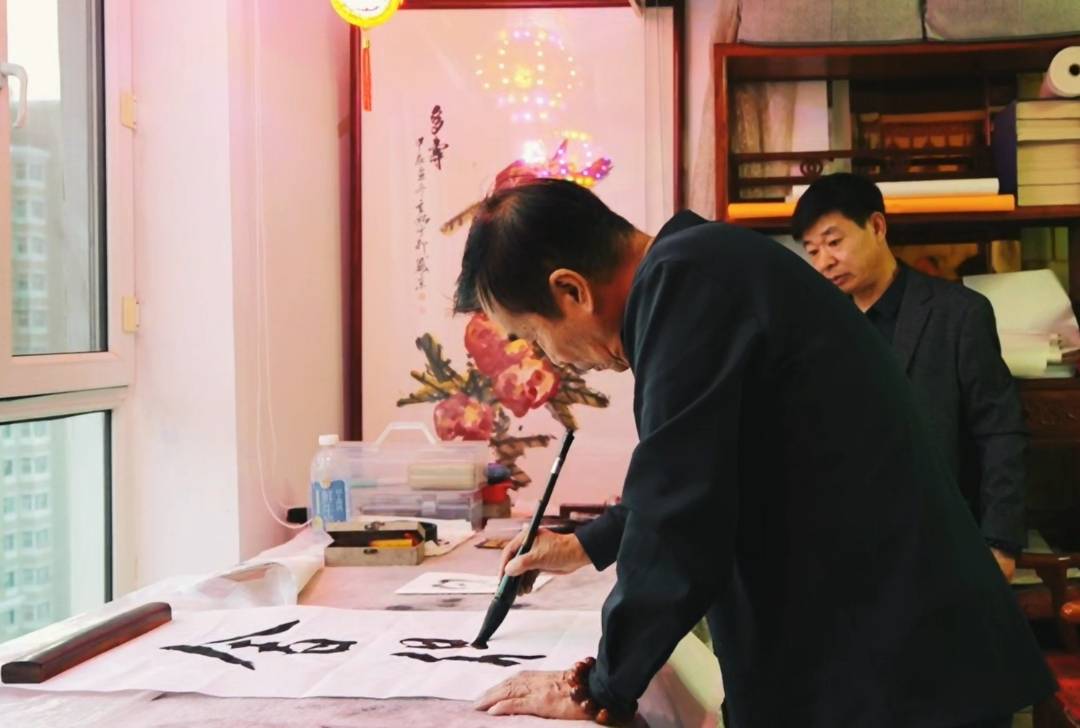 更添温情的是,认亲仪式后,何庆魁先生与姜立新携手合作书法作品《舍得》。两人挥毫泼墨、默契十足,一笔一画间,既有何庆魁先生的沉稳大气,又有姜立新的刚劲洒脱,“舍得”二字意蕴深远,既是人生处世的智慧,更是两代创作者对艺术的感悟——舍得时间深耕创作,舍得心血打磨作品,方能在影视道路上走得长远。笔墨交融间,义父义子的情谊愈发浓厚,艺术初心的共鸣愈发强烈,定格成一幅满是温情与初心的动人画面。