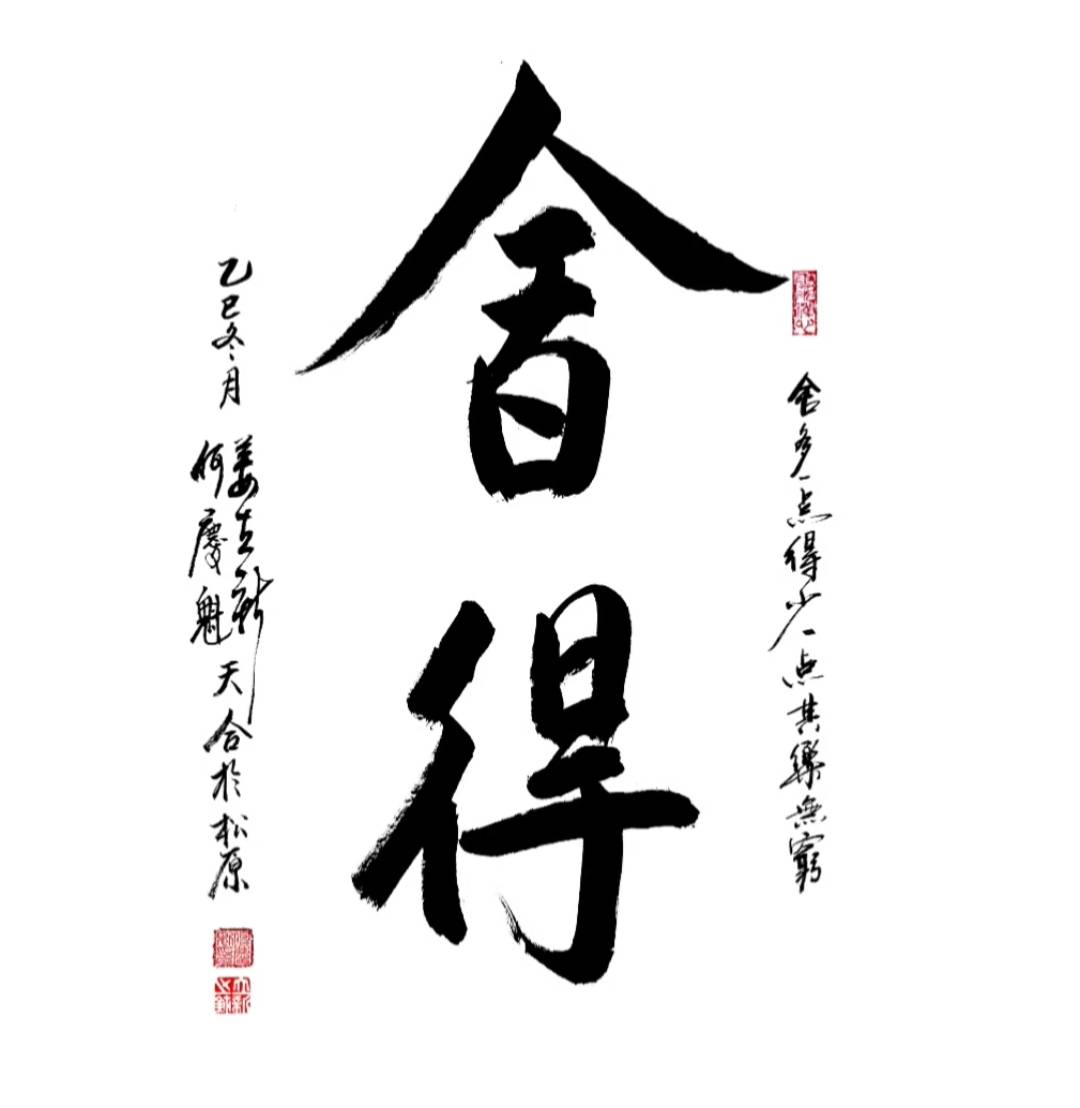 义父何庆魁和义子姜立新合作书法作品《舍得》