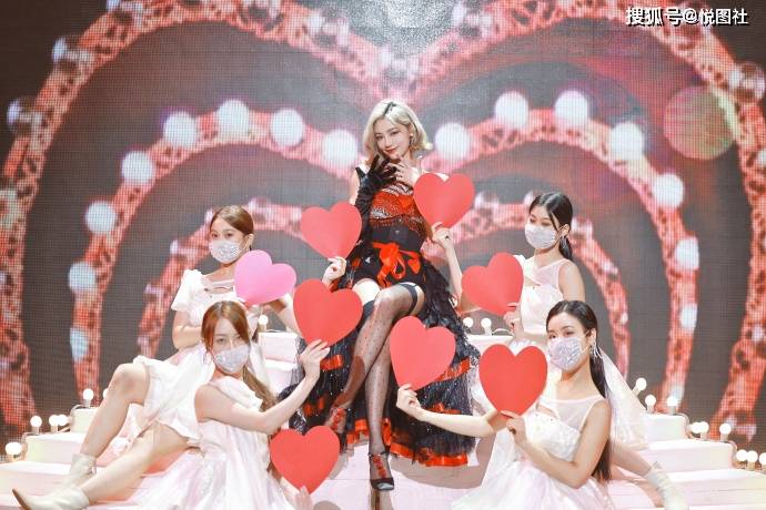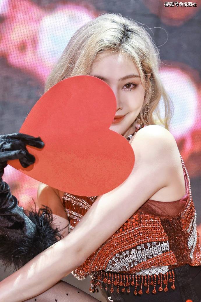 舞台灯晕里,她举着红心道具的模样,像把 “甜媚” 和 “锐利” 焊在了一起,每一个动作都裹着让人移不开眼的舞台魅力,又娇又有气场。