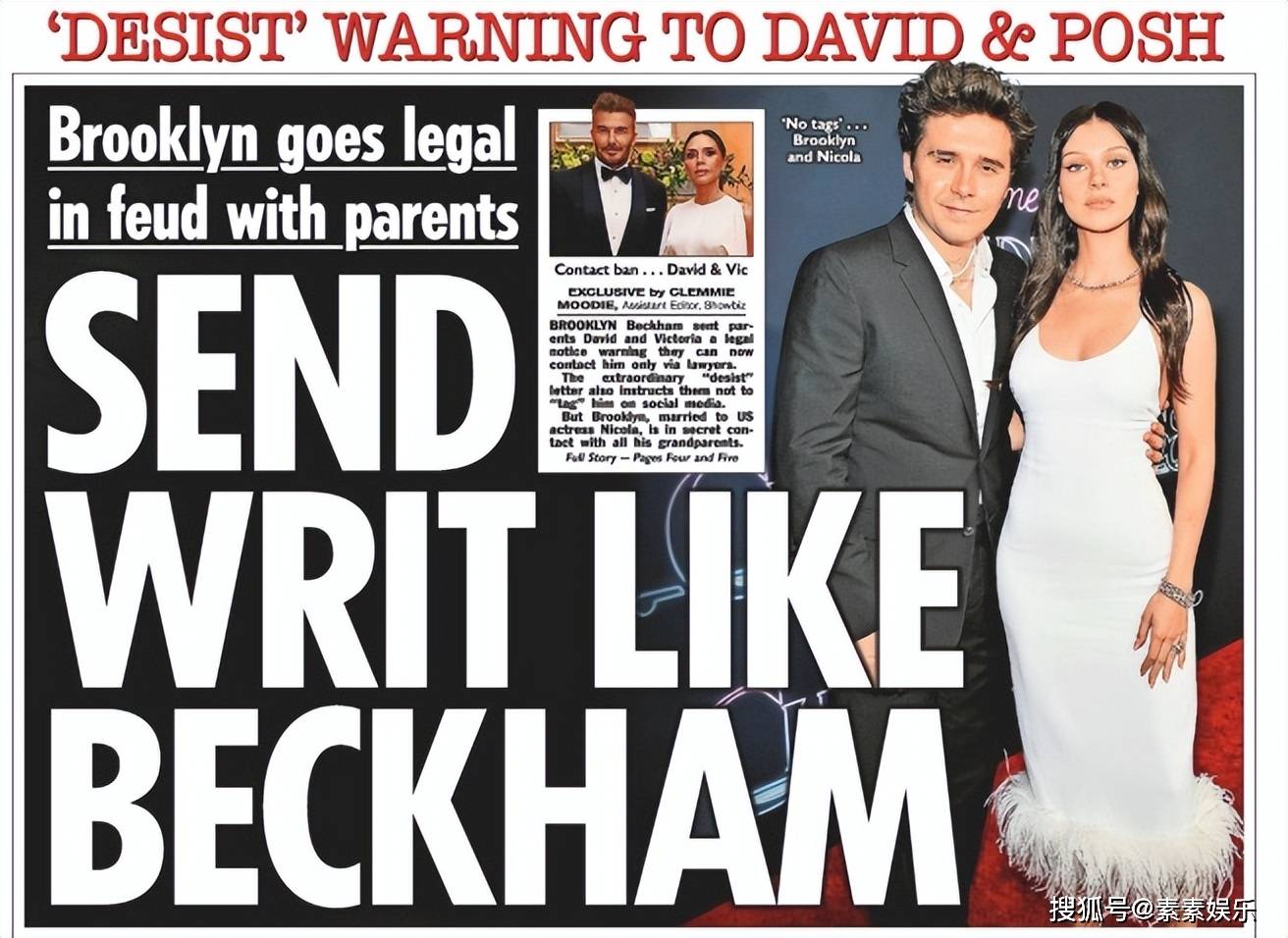 外媒的最新报道:布鲁克林已向父母发出律师函,要求贝克汉姆夫妇在生活之中不要再联系他们,也不要给他们的社媒体账号点赞。