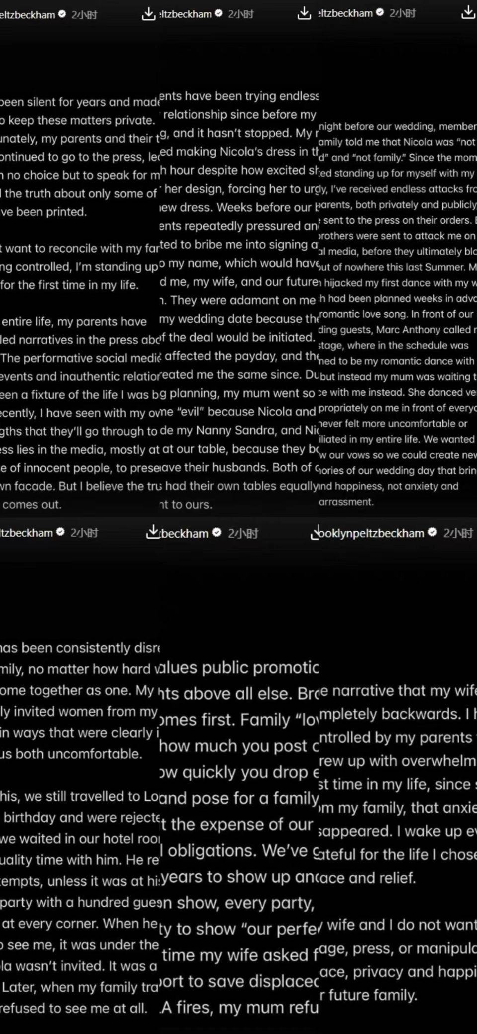 一直有传贝克汉姆大儿子“嫁入”豪门后和父母不和,但这次布鲁克林发布超长文,彻底撕开了这层面纱背后的真相,他看来忍受父母很久。