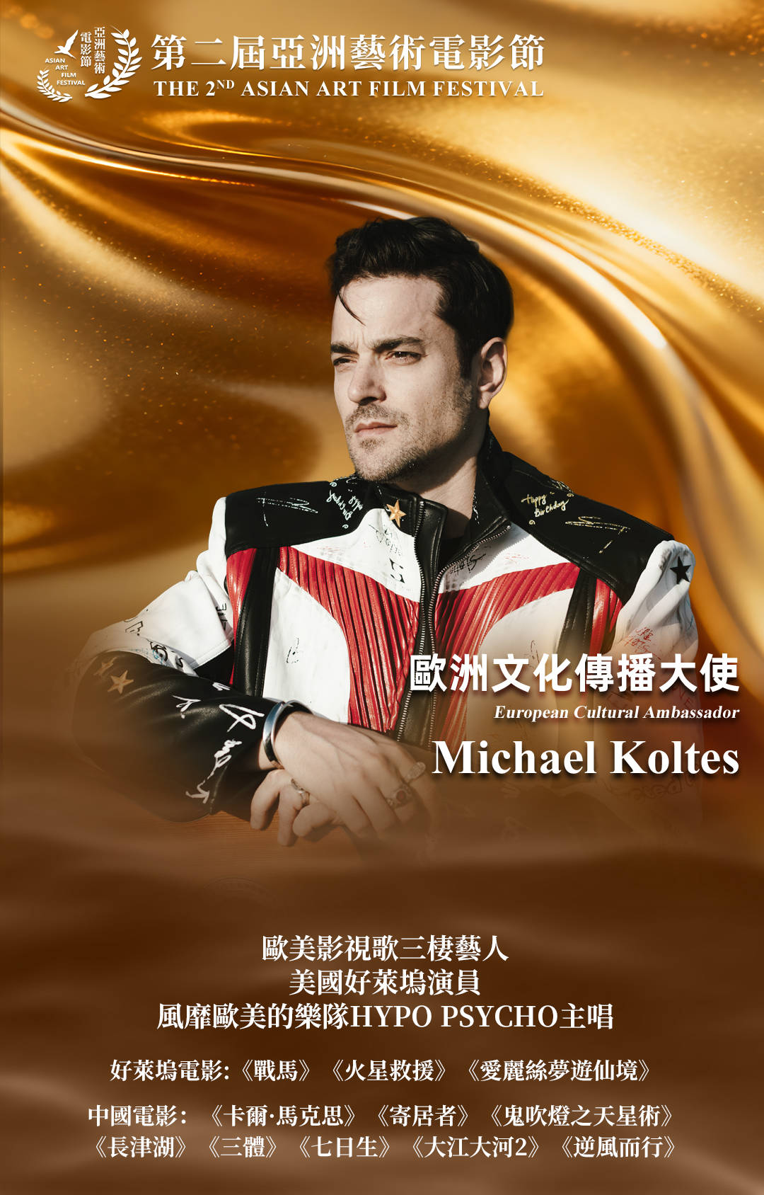 亞洲藝術電影節榮幸宣布: 歐洲文化傳播大使、歐美影視歌三棲藝人 Michael Koltes,正式出任本屆 亞洲藝術電影節傳播大使。 身兼美國好萊塢職業演員與歐美人氣樂隊 HYPO PSYCHO 主唱,Michael 以其跨文化背景與多領域創作能量,在全球藝文界擁有深遠影響力。他參演多部國際知名電影,包括: 🎬 好萊塢作品: 《戰馬 War Horse》 《火星救援 The Martian》 《愛麗絲夢遊仙境 Alice in Wonderland》 同時深度參與亞洲影視創作,展現對多元文化的理解與投入: 🎬 中國影視作品: 《卡爾·馬克思》 《寄居者》 《鬼吹燈之天星術》 《長津湖》 《三體》 《七日生》 《大江大河2》 《逆畫而行》 Michael 的加入,將以國際視野與創作張力,助力亞洲藝術電影節深化跨文化影響力,連結全球觀眾,共同推動藝術電影的國際對話。 #亚洲艺术电影节 #AAFF #亚洲艺术电影节金海燕奖 #电影节 #影视圈动态 #电影 #澳门