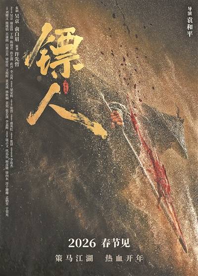昨日,武侠动作电影《镖人:风起大漠》(以下简称《镖人》)宣布定档2026年春节。电影由袁和平执导,吴京、俞白眉监制,吴京、谢霆锋、于适、陈丽君、孙艺洲、此沙、李云霄领衔主演,梁家辉特别演出,张晋友情主演,惠英红友情演出,张译友情客串,李连杰特别友情出演。寇占文、代乐乐、于荣光等友情出演。