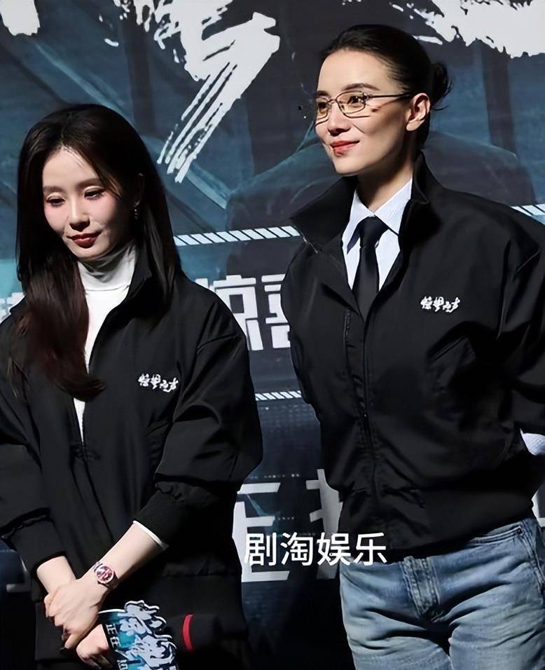 这次聚会,大家都穿着《惊蛰无声》宣传的黑色夹克工装,没有繁复的妆容和礼服,反倒更能考验三位女明星的精神状态。