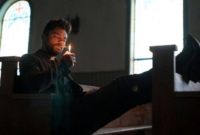 《传教士》第一季以荒诞笔触撕开宗教信仰的伪善面纱。德州牧师杰西意外获得操控他人意志的“上帝圣言”能力,却陷入更深的道德困境——他试图用暴力手段“拯救”堕落小镇,却让泰德自P心脏、尤金坠入地狱,暴力救赎沦为人性异化的狂欢。剧集将黑色幽默与邪典美学熔于一炉:吸血鬼卡西迪在飞机上涂鸦圣经、图丽普教小孩造火箭炮轰直升机,荒诞场景下是对信仰虚伪性的辛辣嘲讽。
