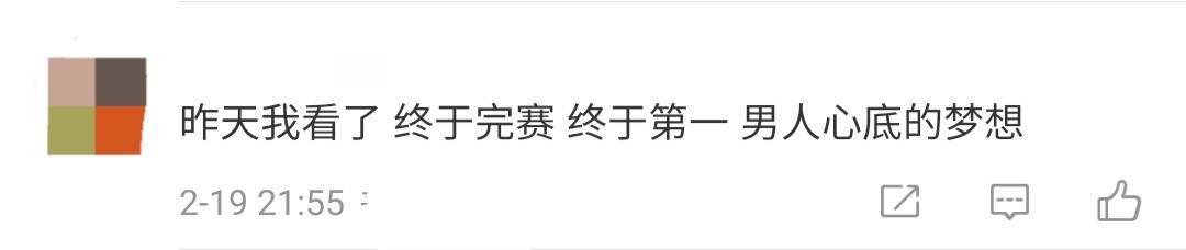 “昨天我看了,终于完赛,终于第一,男人心底的梦想。”