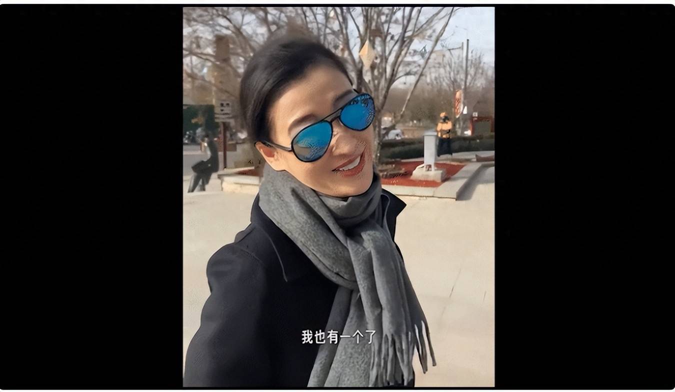 在视频中,梅婷以一身时尚的黑色长款妮衣亮相,加上简练的围巾和亮蓝色眼镜,展现出了她优雅、知性和大方的魅力。