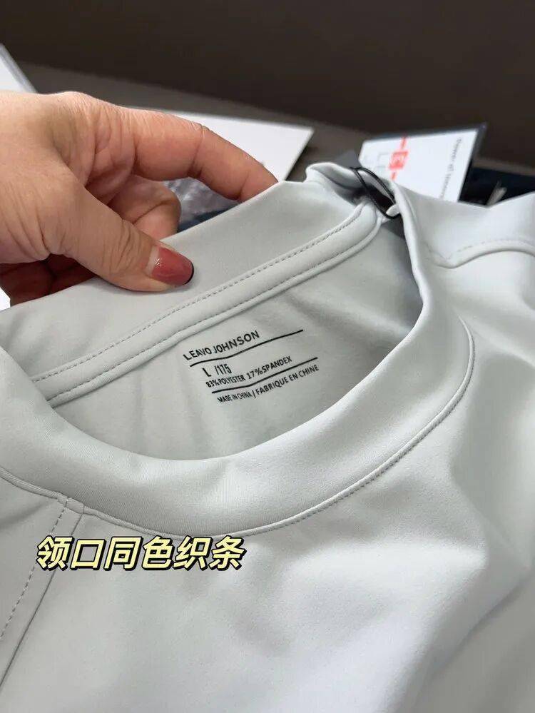 领口内侧用了立体包边 + 贴条工艺,走线平整,边缘干净,不易变形,不卷边,贴脖子但不勒,舒适度很高。