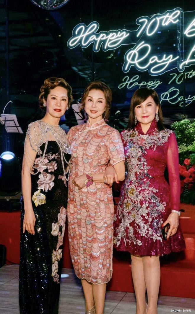 在众多到场的嘉宾中,有几位素来低调的女士格外引人注目。她们通常不常出现在公众面前,此次的亮相无疑展示了她们与寿星之间深厚的情谊。其中一位女士穿着一件绣满繁花的长裙,经典的立领设计展现出优雅的气质。整体的造型既保留了传统元素,又巧妙融合了现代的审美观念,既传统又时尚,十分协调。她身边的年轻晚辈也穿着一件精致的改良中式裙装,发髻梳理得整整齐齐,展现了浓郁的旧时风情,与宴会的主题相得益彰。