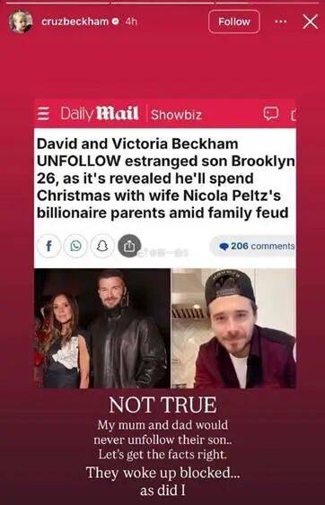 今年圣诞节注定是小贝夫妇过得最糟心的一年,他们被自己的大儿子布鲁克林单方面“断舍离”了。
