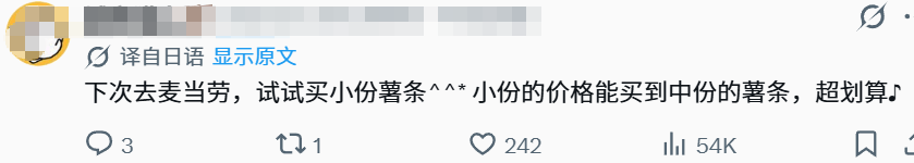 下次去麦当劳买小份薯条,小份价格能买到中份薯条。(指麦当劳M代表中份的意思)