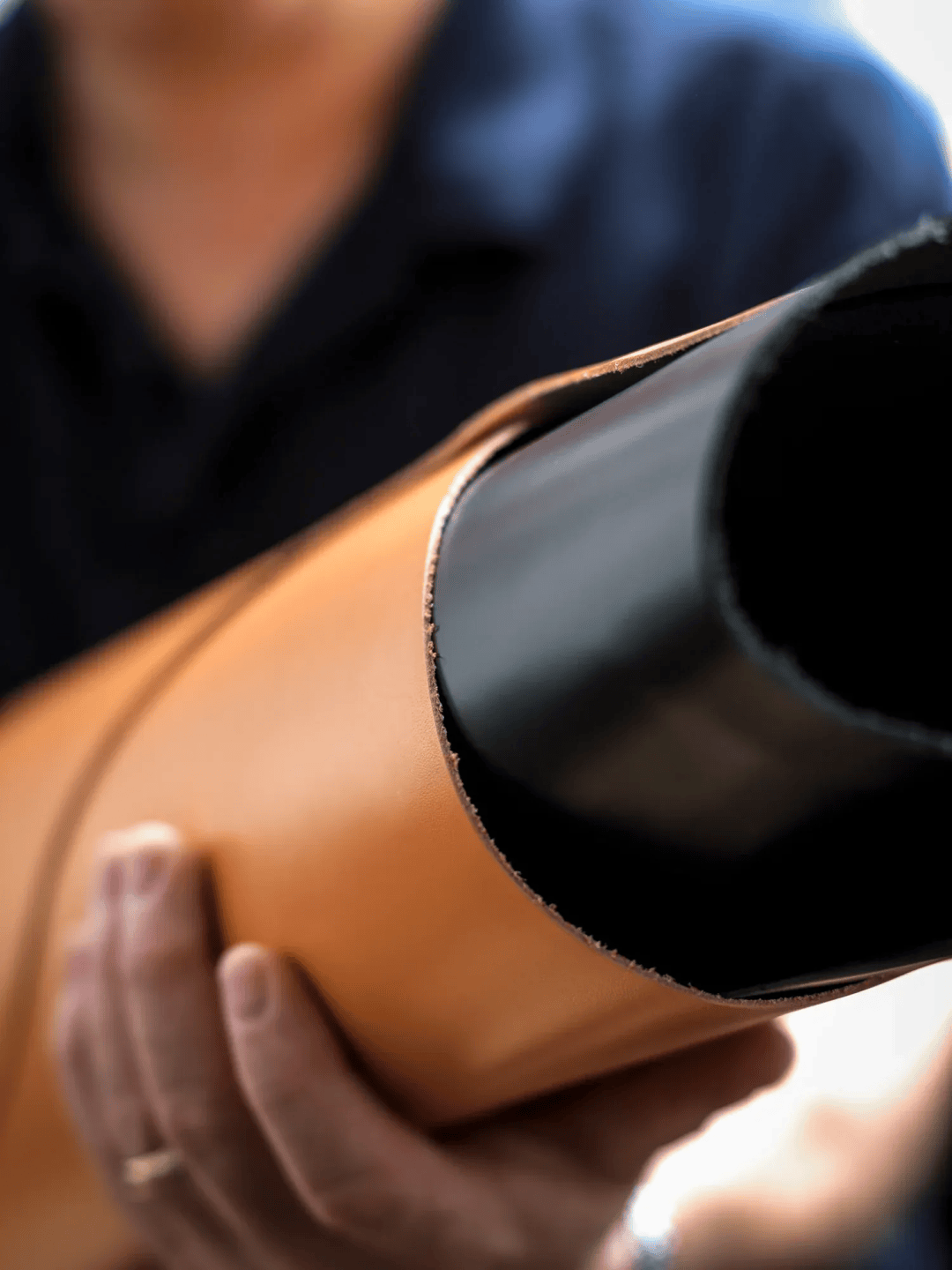 甄选顶级意大利小牛皮,经铬鞣、透染工艺处理后,再通过滚筒摔软,造就黄油般的柔润触感,同时保留皮革原生纹理。它不仅手感出众,更兼具耐磨特性,且拥有丰富的色彩选择。
