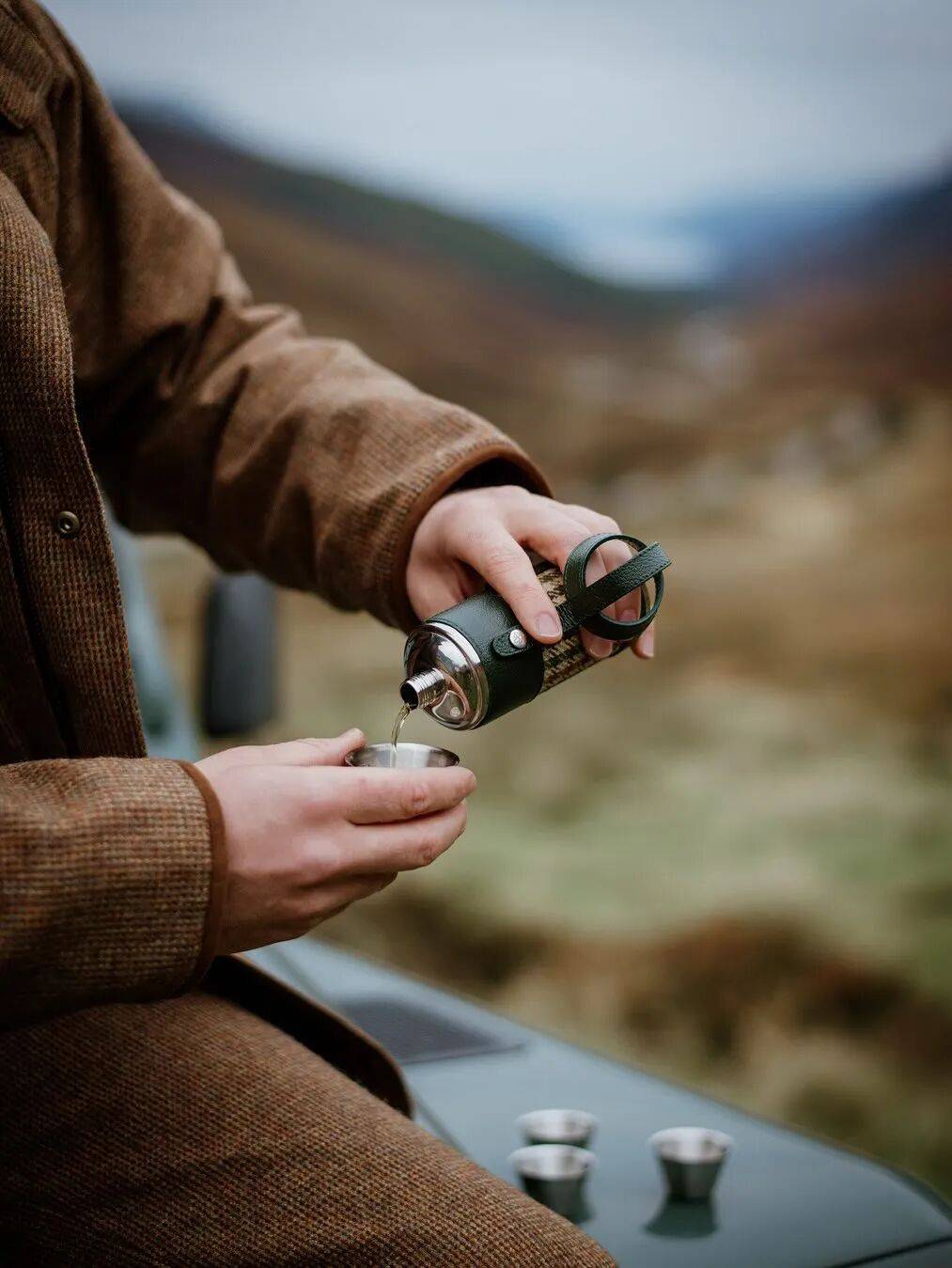 Campbell's of Beauly x Ettinger Tweed 8oz Hunter Flask 联名酒壶,融合山羊皮与粗花呢材质,适配冬日出行、露营狩猎等多种场景。