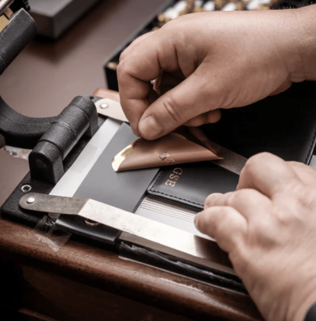 除了丰富的产品品类与顶级的皮革选材,ETTINGER 还推出专属定制服务,以满足消费者的个性化需求,核心服务涵盖压花、刺绣、深度定制三大板块。