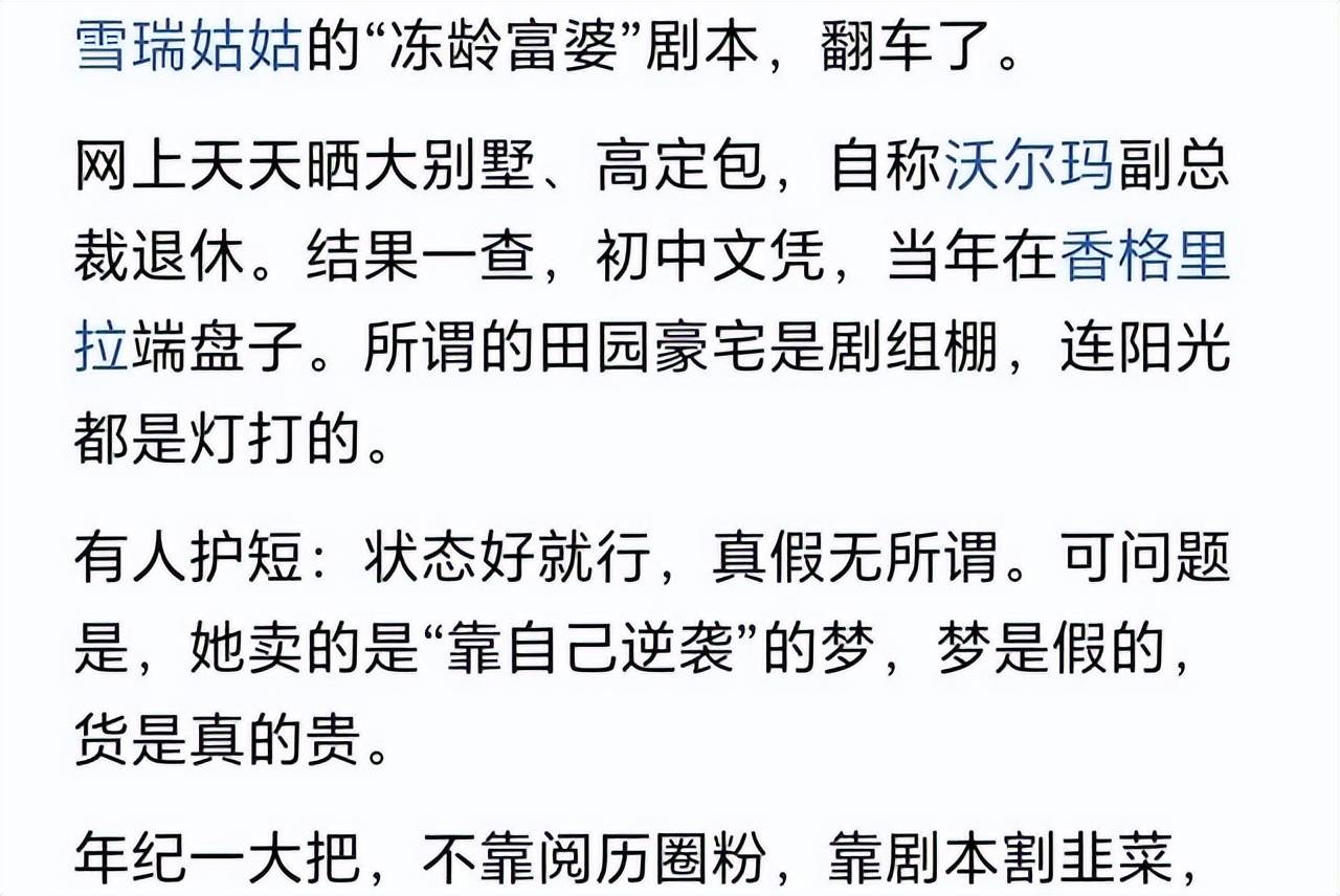 然而,关于她的视频风格变化,网络讨论依然持续。一些网友指出,早期的视频风格较为简朴,使用的物品大多是便宜的,而后期的视频中则开始出现了更多高档的元素。知情人士补充道,雪瑞姑姑早期提到过一些物品是低价购得的,但后期的展示却与此不符。这些变化被用来支持人设包装的说法。她在回应中坚持认为,自己所展示的内容是真实的,生活经历也确实包括从基层职位到逐步积累经验的过程。她提到自己在零售行业的工作时长,但并未确认具体的职位级别。回应发布后,争议逐渐平息,尽管偶尔仍有人提起,但整体热度已大幅下降。