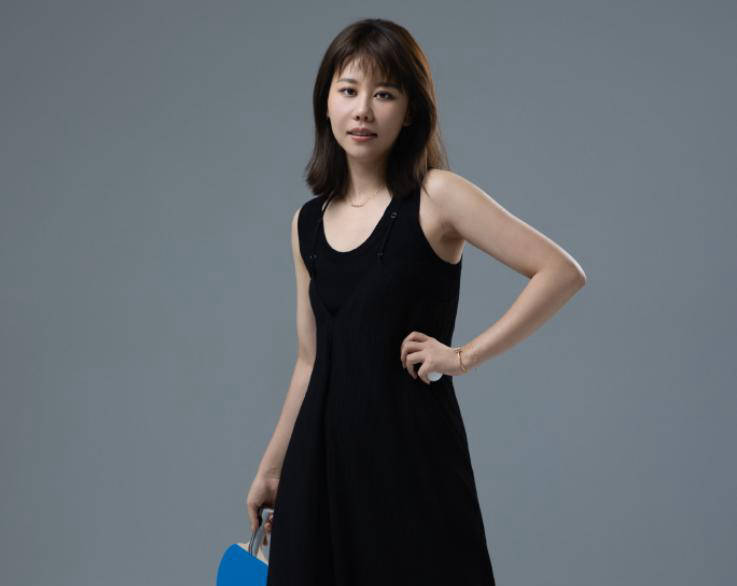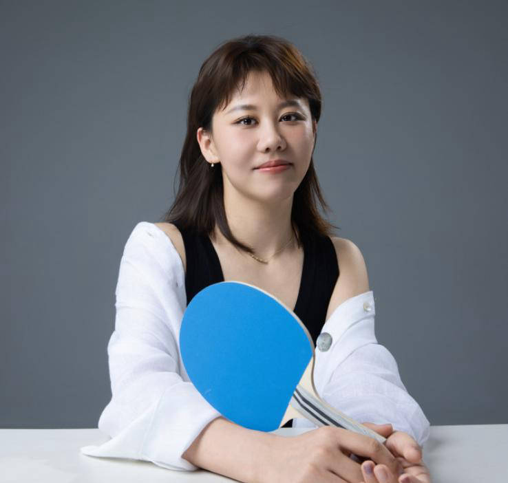 另一张照片里,陈幸同披肩长发,脸上挂着浅浅的笑意,妆容细腻。她内穿黑色无袖裙,外搭白色衬衫,微微露出的香肩透露出温柔妩媚的气息。手持蓝色胶皮球拍,她的形象既专业又不失生活化,整体画面极具和谐美感,十分抓眼球。