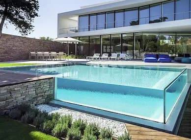 材质层面,二者呈现截然不同的特性。传统泳池以混凝土搭配瓷砖为核心,虽能保障基础稳固,但厚重材质自带封闭感,瓷砖拼接处易藏污纳垢、滋生细菌,长期浸泡还可能出现脱落、渗漏等问题。伊贝莎无边泳池选用高透光超白钢化玻璃,经高温淬炼后抗冲击强度达普通玻璃5倍以上,破碎后呈无锐角颗粒,安全性拉满。搭配三重密封工艺与耐腐蚀框架,可抵御极端温差,长期处于潮湿环境也不易开裂褪色,彻底规避传统材质的固有缺陷。
