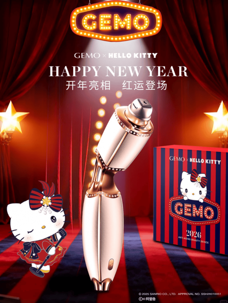 新春渐近,巨星登场,让舞台的追光为你点亮!高端美容仪品牌GEMO金茉携手Hello Kitty,以一场华丽的“百老汇大秀”作为联名收官之作,隆重推出复配水光炮新春限定礼盒。快接住这份红运,把院线级美肤沙龙搬回家,和她一起开启新春变美第一幕!