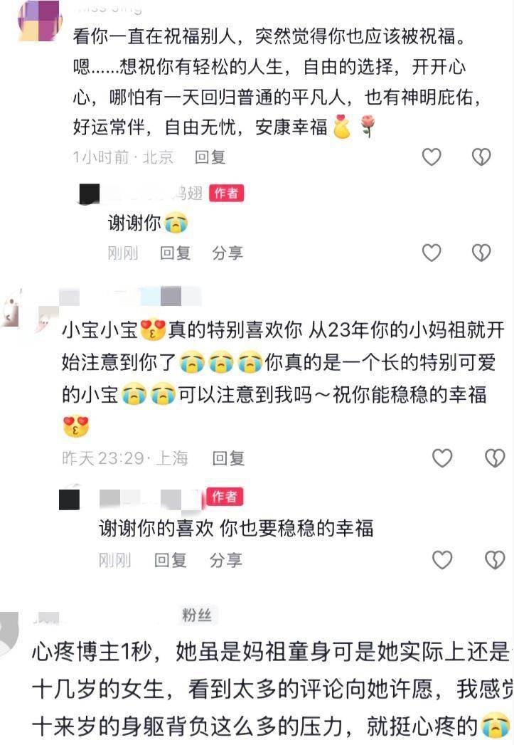 此外,也正是因为这场风波,无意中让更多人认识了她。她的账号粉丝数原本只有几万,事件曝光后迅速涨到了30多万。评论区里,充满了来自天南海北的祝福和问候,甚至有不少网友俏皮地向“小妈祖”许愿。