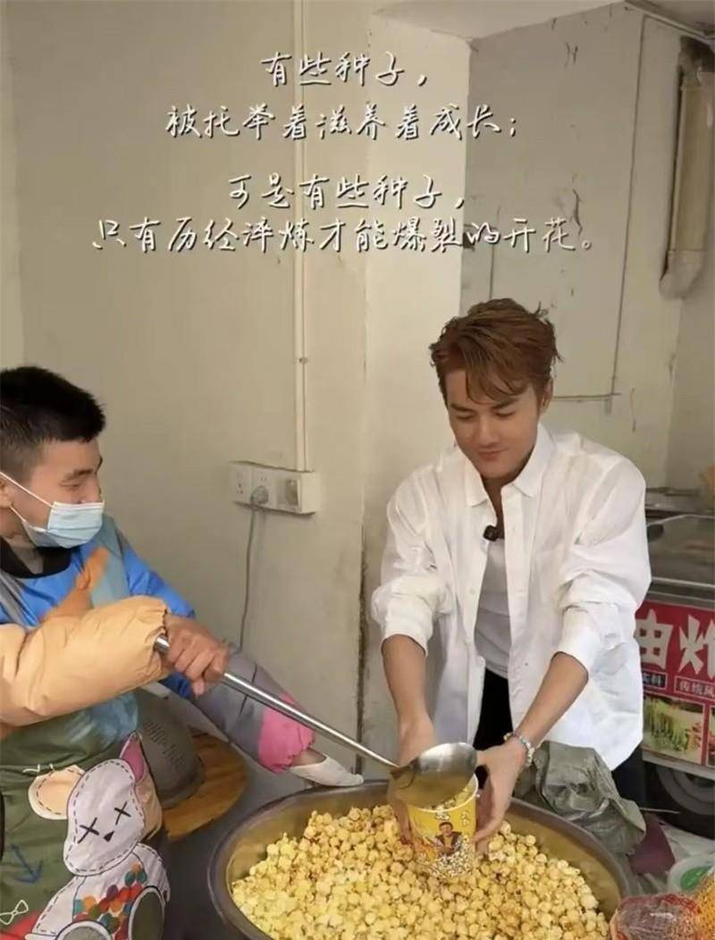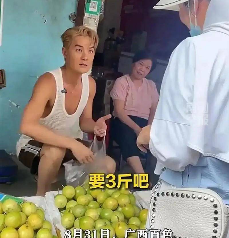 以前他还会穿着背心、大裤衩和拖鞋,挺接地气地在水果摊上帮忙。
