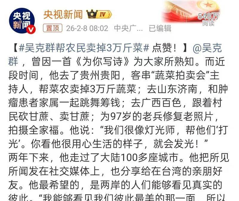 不是推出新歌,而是因为“帮农民卖掉3万斤菜”这事得到了央视的点赞!
